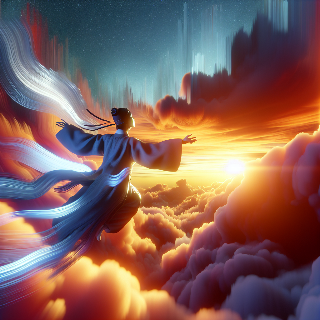 하늘을 나는 것은 용의 비상과 같아, 건괘(乾卦)의 상승 에너지를 상징합니다.